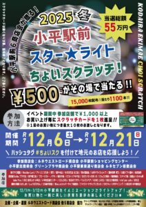 #こだハロ2025「ガチャガチャ!!ゴーストトレジャー!3rd」 2025年10月19日 最終更新日時 : 2025年10月19日 happycomputing日本一丸ポスト連合商店会の主催にて今年も「#こだハロ」を開催いたします。毎年大好評の仮装イベントです。当日はぜひステキな仮装をして小平駅前にお越しください。詳しくは下記特設ウェブサイトをご覧ください。 #こだハロ2025「ガチャガチャ!!ゴーストトレジャー! 3rd」 | ハッシュタグは「#こだハロ2025」! 日本一丸ポスト連合商店会の主催にて今年も「#こだハロ」を開催いたします。 #こだハロ2025「ガチャガチャ!!ゴーストトレジャー! 3rd」 Bluesky